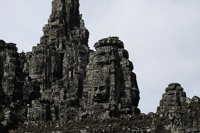 - 中心地:バイヨン寺院が有名で、その塔に刻まれた微笑みをたたえた「四面仏像」が印象的です。
